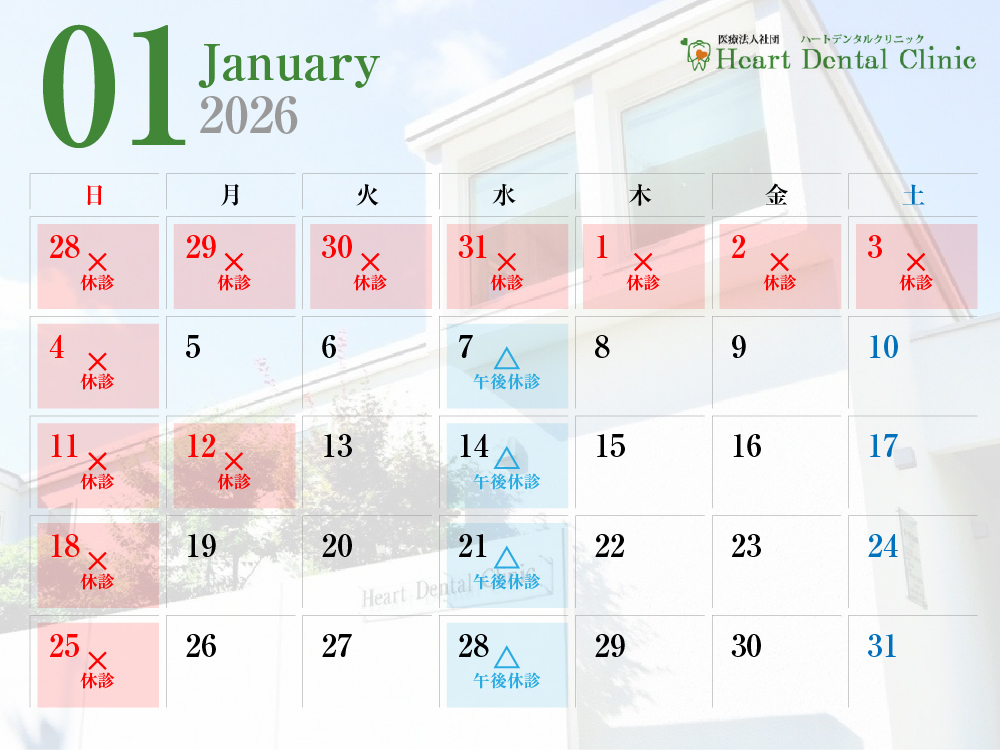 - 2025.12.28(日)~ 2026.1.4(日) 年末年始休診のご案内