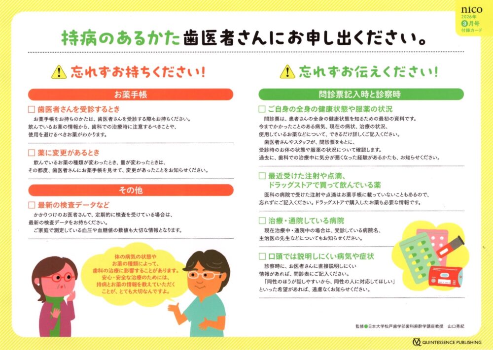 付録カード①:持病のあるかた 歯医者さんにお申し出ください